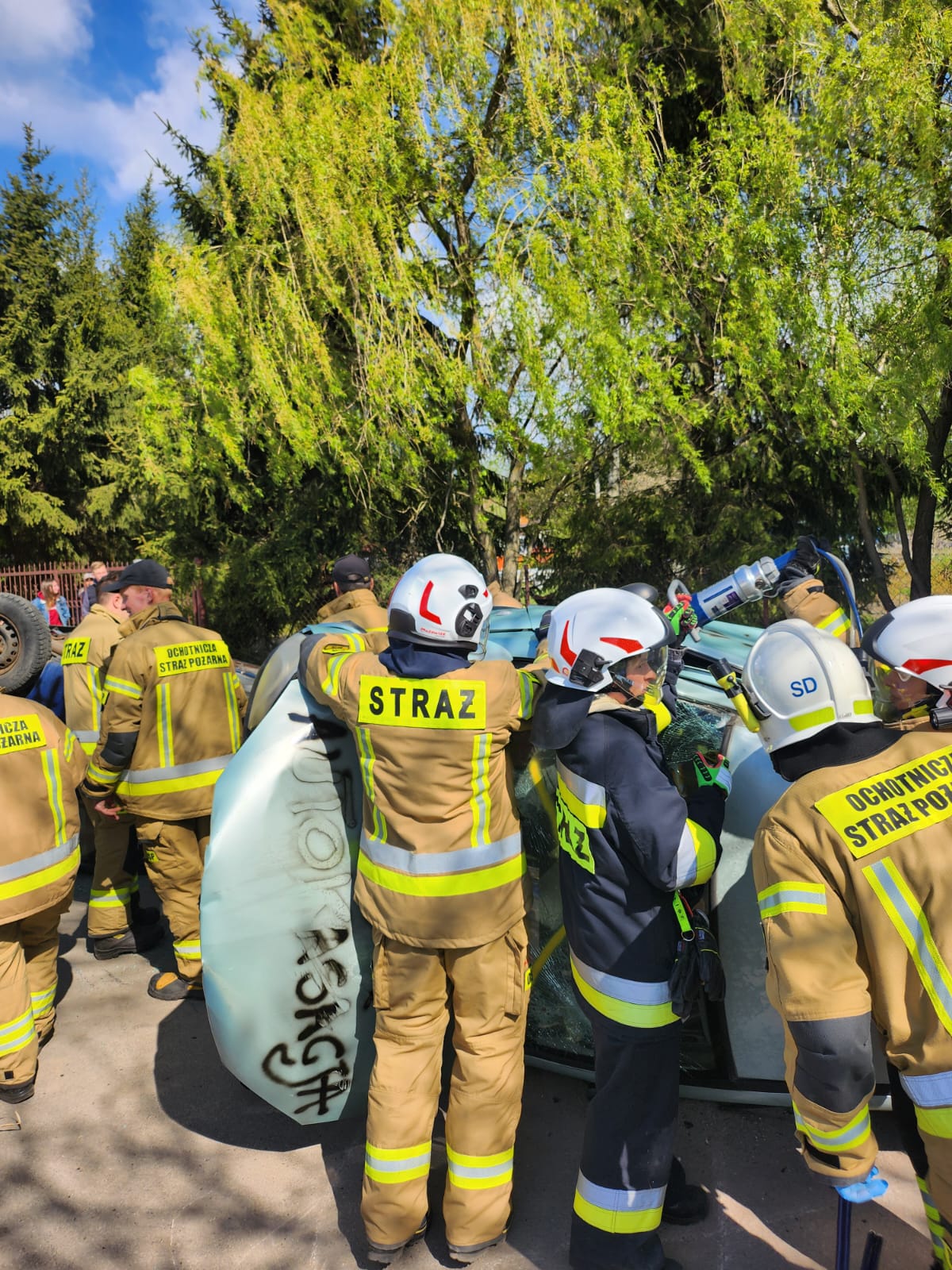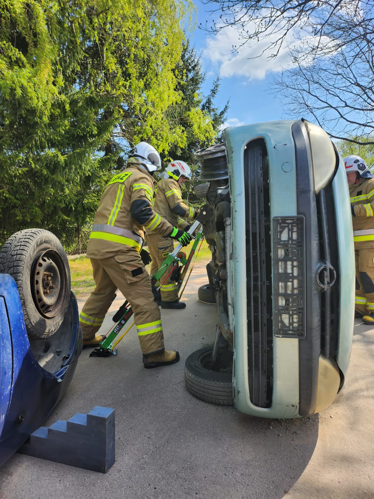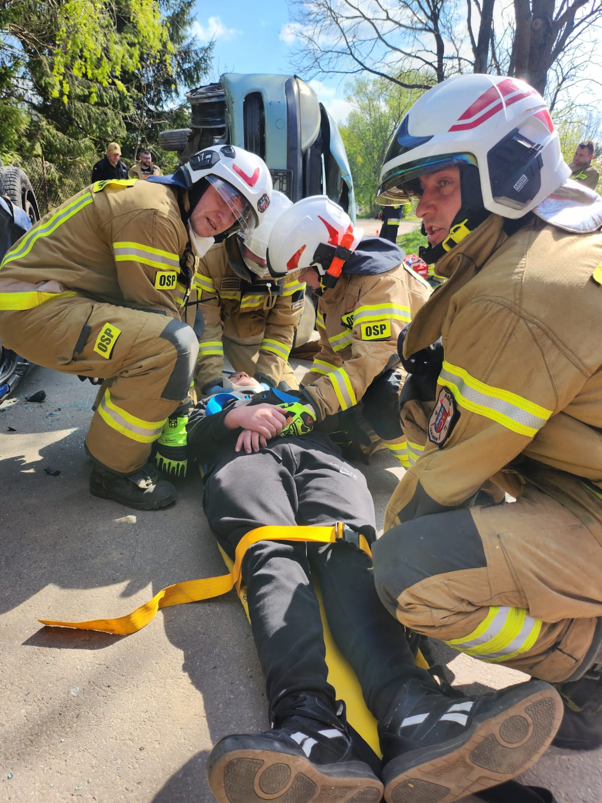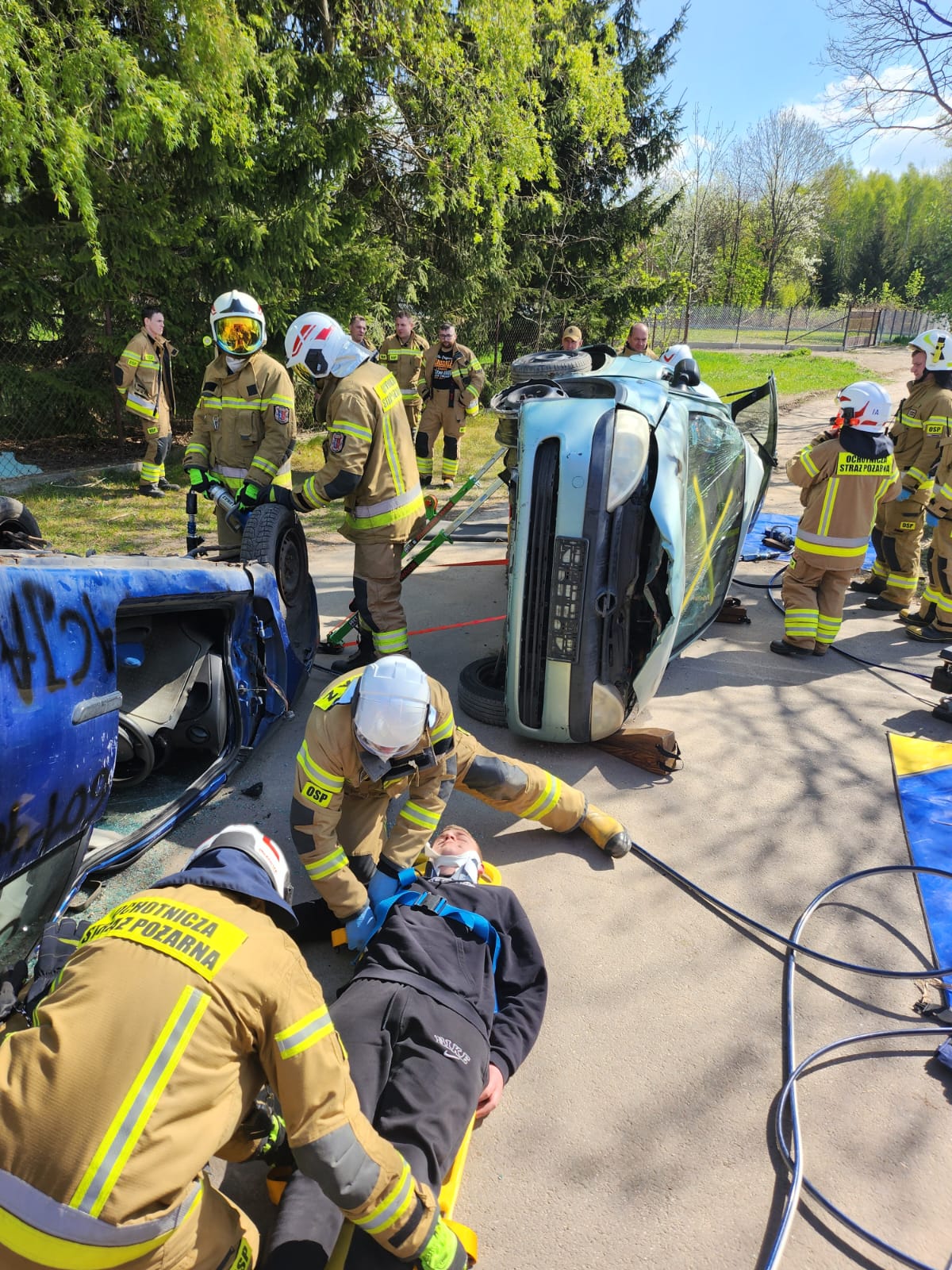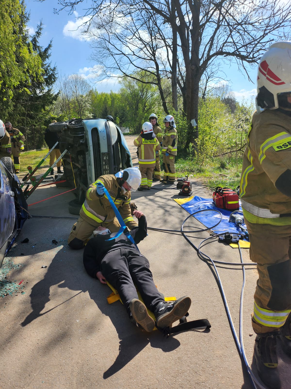 Drugi etap obejmował symulację wypadku drogowego z udziałem dwóch samochodów osobowych. Zadaniem strażaków było zabezpieczenie miejsca zdarzenia, udzielenie pierwszej pomocy poszkodowanym oraz wykonanie dostępu do osób uwięzionych w pojazdach. Scenariusz ten umożliwił doskonalenie umiejętności z zakresu ratownictwa technicznego oraz współdziałania między jednostkami.