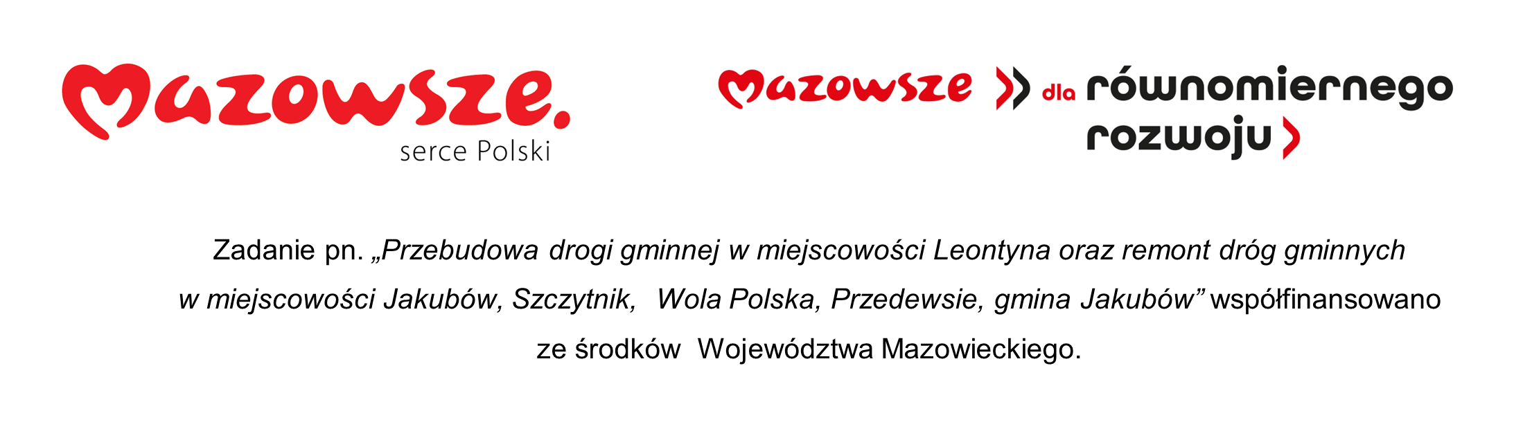 Dobiegły końca roboty związane z remontem drogi gminnej w Przedewsiu realizowane w ramach zadania pn. „Przebudowa drogi gminnej w miejscowości Leontyna oraz remont dróg gminnych w miejscowości Jakubów, Szczytnik, Wola Polska, Przedewsie, gmina Jakubów”, które współfinansowane jest ze środków Województwa Mazowieckiego jest w ramach Instrumentu wsparcia zadań ważnych dla równomiernego rozwoju województwa mazowieckiego.