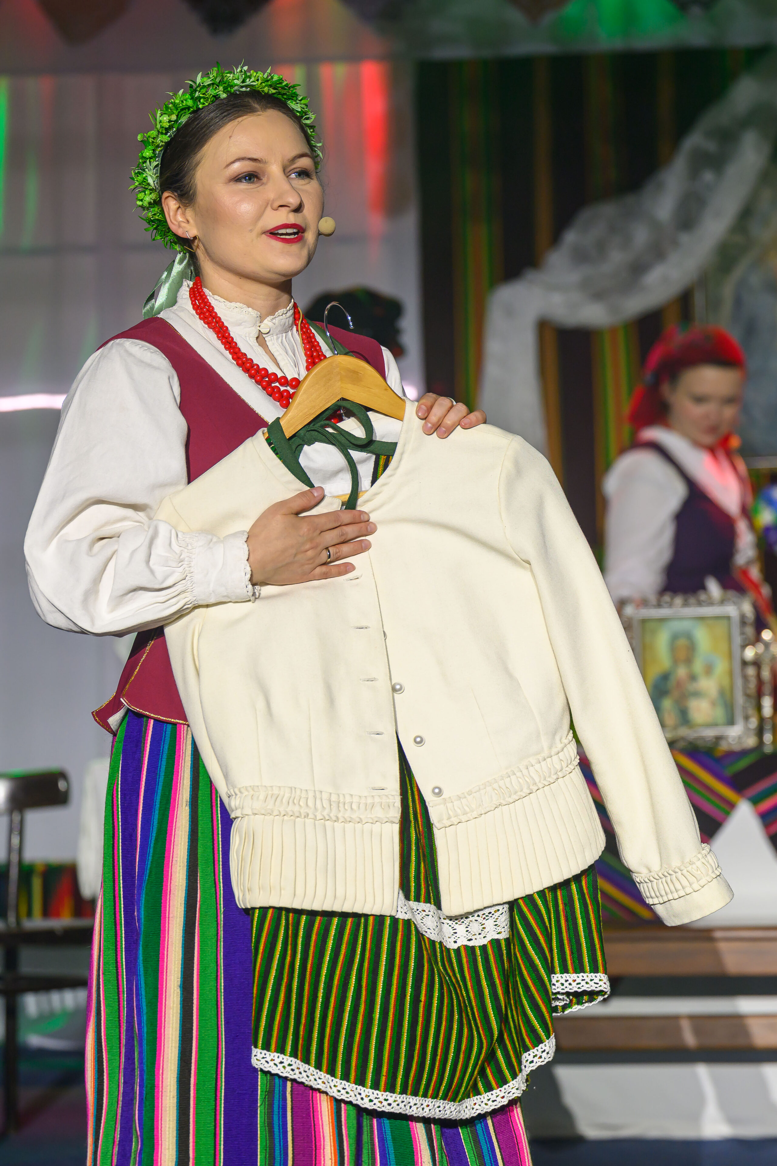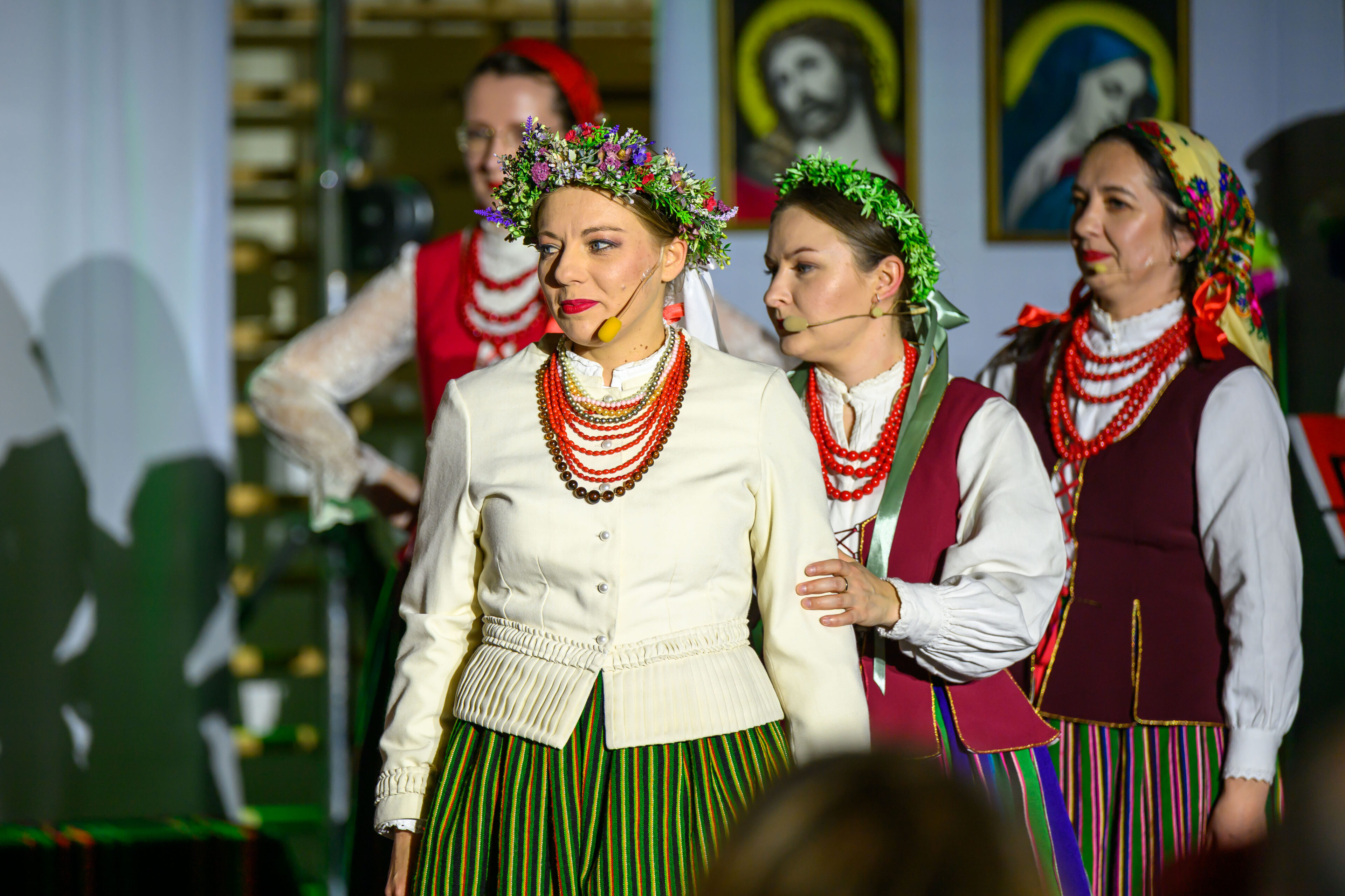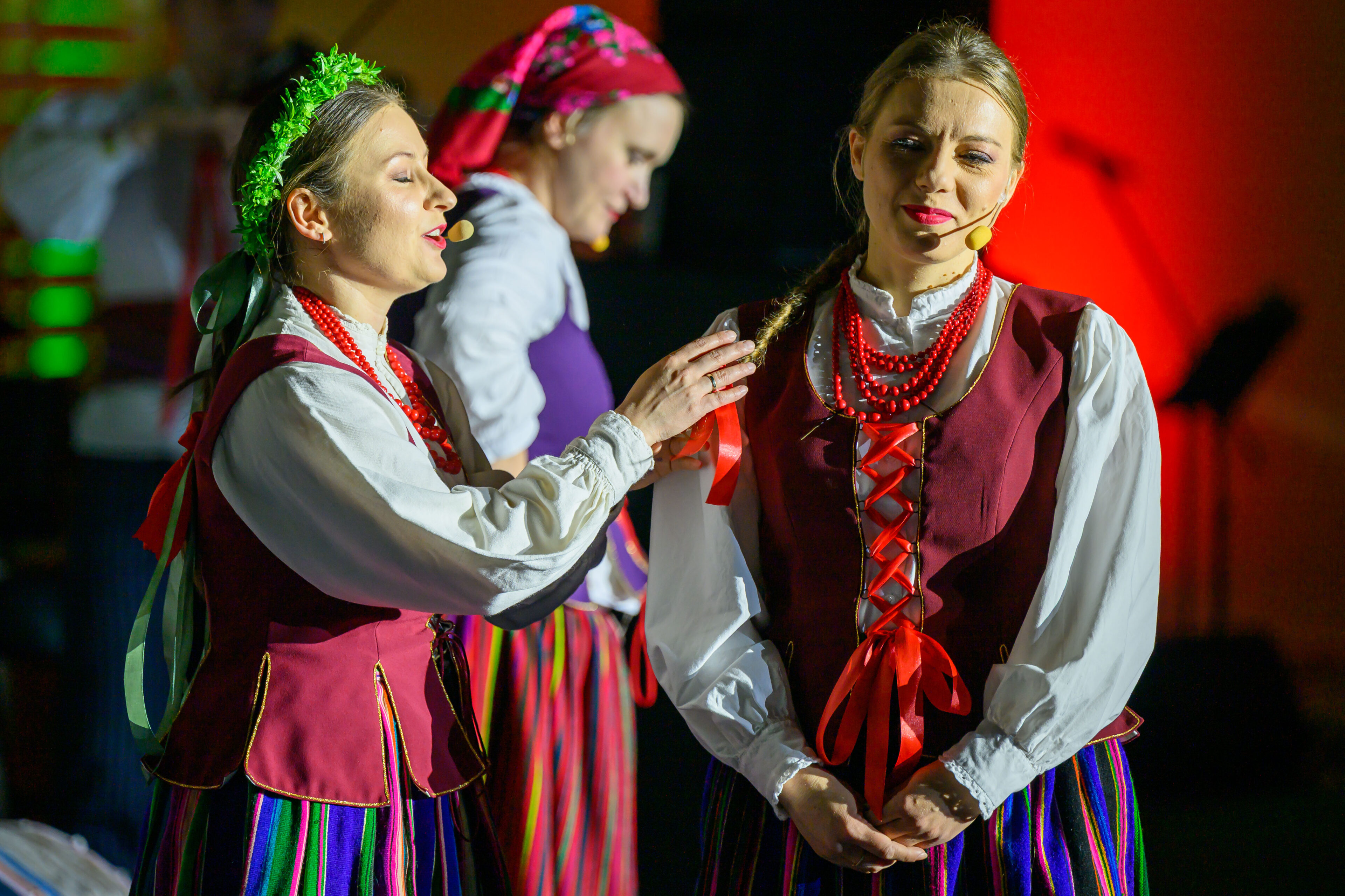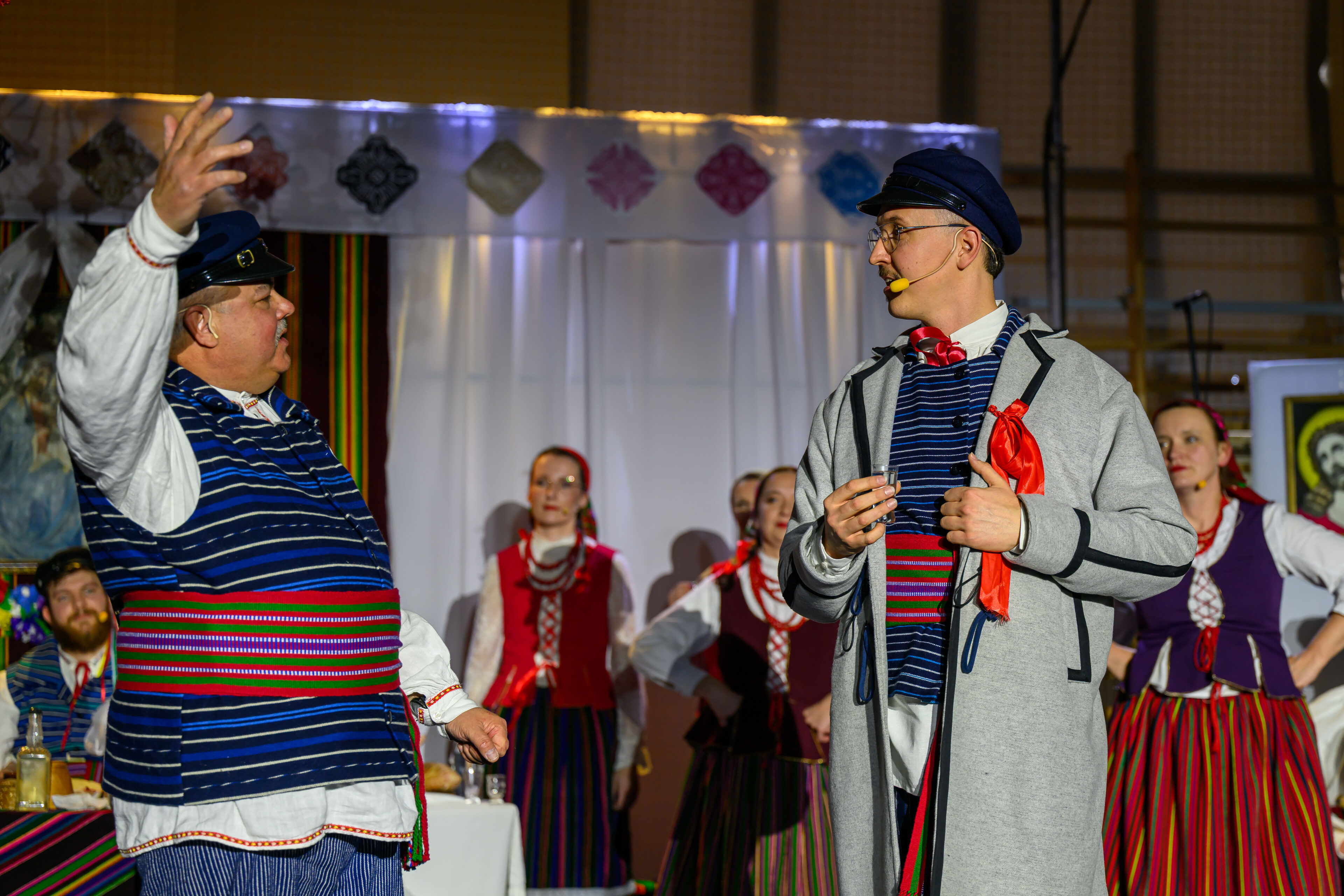 Spektakl przeniósł widzów w czasy dawnych, dziś już rzadko spotykanych obrzędów weselnych. Artyści w barwny i autentyczny sposób zaprezentowali kolejne etapy tradycyjnego wesela – od przygotowań, przez ceremonię, aż po wspólne świętowanie. Nie zabrakło ludowych strojów, przyśpiewek oraz charakterystycznych zwyczajów, które niegdyś stanowiły ważny element życia społecznego regionu.